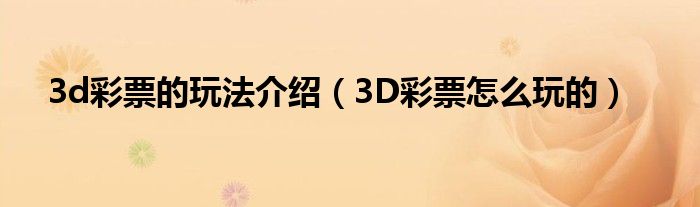 今天菲菲来为大家解答以上的问题。3d彩票的玩法介绍,3D彩票怎么玩的相信很多小伙伴还不知道,现在让我们一起来看看吧!