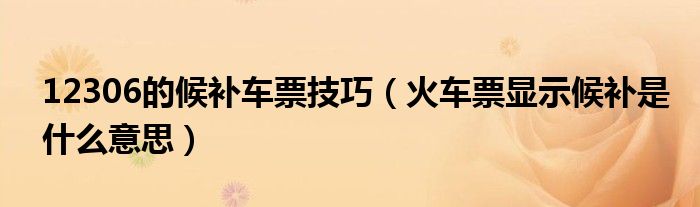今天菲菲来为大家解答以上的问题。12306的候补车票技巧,火车票显示候补是什么意思相信很多小伙伴还不知道,现在让我们一起来看看吧!