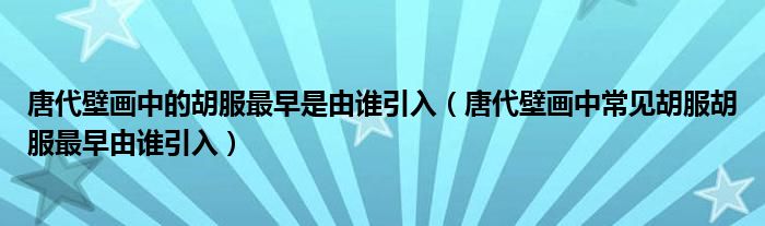 唐代壁画中的胡服最早是由谁引入(唐代壁画中常见胡服胡服最早由谁引入),急!求解答,求此刻有回应!