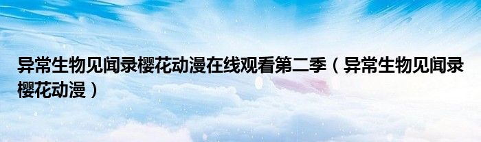 今天菲菲来为大家解答以上的问题。异常生物见闻录樱花动漫在线观看第二季,异常生物见闻录樱花动漫相信很多小伙伴还不知道,现在让我们一起来看看吧!