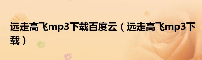 今天菲菲来为大家解答以上的问题。远走高飞mp3下载百度云,远走高飞mp3下载相信很多小伙伴还不知道,现在让我们一起来看看吧!