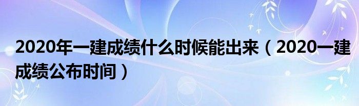 今天菲菲来为大家解答以上的问题。2020年一建成绩什么时候能出来,2020一建成绩公布时间相信很多小伙伴还不知道,现在让我们一起来看看吧!