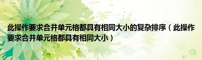此操作要求合并单元格都具有相同大小的复杂排序(此操作要求合并单元格都具有相同大小),在线等,求大佬翻我牌子!