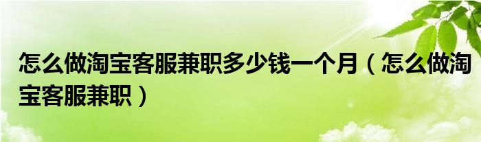 今天菲菲来为大家解答以上的问题。怎么做淘宝客服兼职多少钱一个月,怎么做淘宝客服兼职相信很多小伙伴还不知道,现在让我们一起来看看吧!