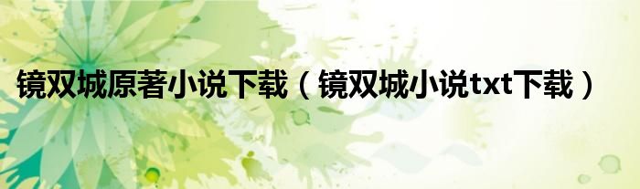 今天菲菲来为大家解答以上的问题。镜双城原著小说下载,镜双城小说txt下载相信很多小伙伴还不知道,现在让我们一起来看看吧!