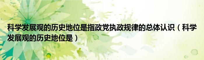 今天菲菲来为大家解答以上的问题。科学发展观的历史地位是指政党执政规律的总体认识,科学发展观的历史地位是相信很多小伙伴还不知道,现在让我们一起来看看吧!