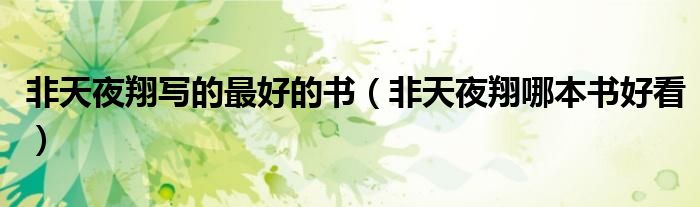 今天菲菲来为大家解答以上的问题。非天夜翔写的最好的书,非天夜翔哪本书好看相信很多小伙伴还不知道,现在让我们一起来看看吧!