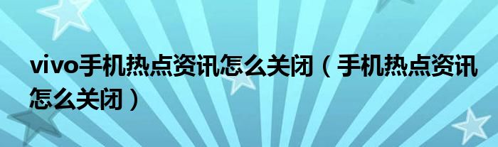 vivo手机热点资讯怎么关闭(手机热点资讯怎么关闭)急求答案,帮忙回答下
