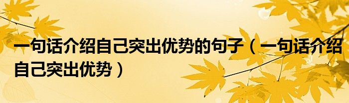 今天菲菲来为大家解答以上的问题。一句话介绍自己突出优势的句子,一句话介绍自己突出优势相信很多小伙伴还不知道,现在让我们一起来看看吧!