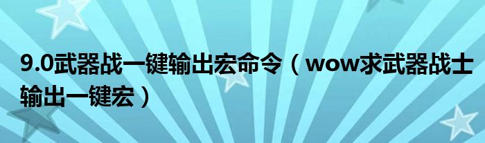 今天菲菲来为大家解答以上的问题。9.0武器战一键输出宏命令,wow求武器战士输出一键宏相信很多小伙伴还不知道,现在让我们一起来看看吧!