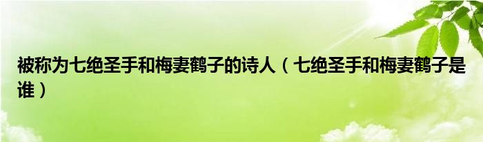 今天菲菲来为大家解答以上的问题。被称为七绝圣手和梅妻鹤子的诗人,七绝圣手和梅妻鹤子是谁相信很多小伙伴还不知道,现在让我们一起来看看吧!