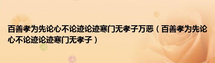 今天菲菲来为大家解答以上的问题。百善孝为先论心不论迹论迹寒门无孝子万恶,百善孝为先论心不论迹论迹寒门无孝子相信很多小伙伴还不知道,现在让我们一起来看看吧!