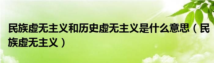 民族虚无主义和历史虚无主义是什么意思(民族虚无主义),急!求解答,求别无视我!