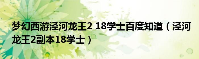 今天菲菲来为大家解答以上的问题。梦幻西游泾河龙王2 18学士百度知道,泾河龙王2副本18学士相信很多小伙伴还不知道,现在让我们一起来看看吧!