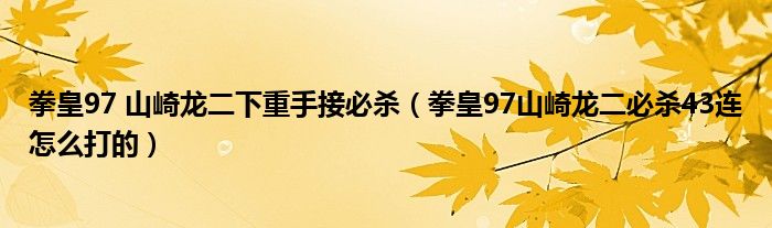 拳皇97 山崎龙二下重手接必杀(拳皇97山崎龙二必杀43连怎么打的),蹲一个大佬,求不嫌弃我问题简单!