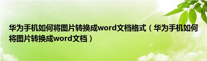 今天菲菲来为大家解答以上的问题。华为手机如何将图片转换成word文档格式,华为手机如何将图片转换成word文档相信很多小伙伴还不知道,现在让我们一起来看看吧!