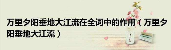 今天菲菲来为大家解答以上的问题。万里夕阳垂地大江流在全词中的作用,万里夕阳垂地大江流相信很多小伙伴还不知道,现在让我们一起来看看吧!