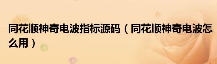 今天菲菲来为大家解答以上的问题。同花顺神奇电波指标源码,同花顺神奇电波怎么用相信很多小伙伴还不知道,现在让我们一起来看看吧!