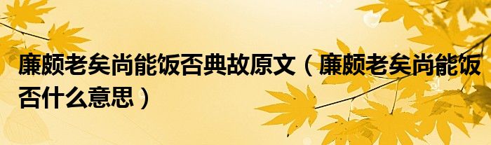 今天菲菲来为大家解答以上的问题。廉颇老矣尚能饭否典故原文,廉颇老矣尚能饭否什么意思相信很多小伙伴还不知道,现在让我们一起来看看吧!
