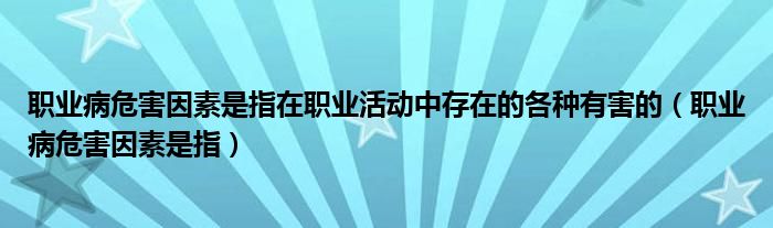 今天菲菲来为大家解答以上的问题。职业病危害因素是指在职业活动中存在的各种有害的,职业病危害因素是指相信很多小伙伴还不知道,现在让我们一起来看看吧!