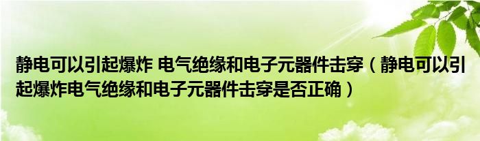 今天菲菲来为大家解答以上的问题。静电可以引起爆炸 电气绝缘和电子元器件击穿,静电可以引起爆炸电气绝缘和电子元器件击穿是否正确相信很多小伙伴还不知道,现在让我们一起来看看吧!