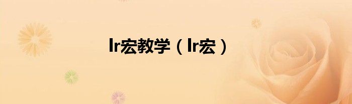 今天菲菲来为大家解答以上的问题。lr宏教学,lr宏相信很多小伙伴还不知道,现在让我们一起来看看吧!