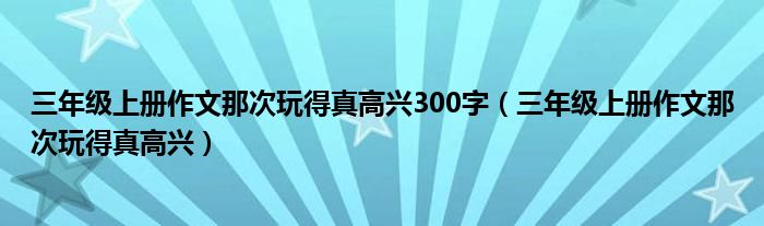 今天菲菲来为大家解答以上的问题。三年级上册作文那次玩得真高兴300字,三年级上册作文那次玩得真高兴相信很多小伙伴还不知道,现在让我们一起来看看吧!
