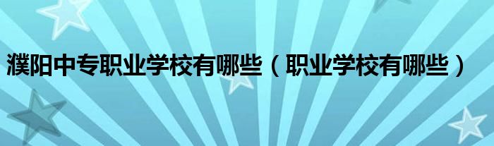 今天菲菲来为大家解答以上的问题。濮阳中专职业学校有哪些,职业学校有哪些相信很多小伙伴还不知道,现在让我们一起来看看吧!