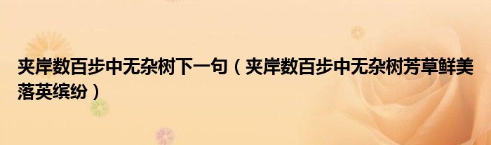今天菲菲来为大家解答以上的问题。夹岸数百步中无杂树下一句,夹岸数百步中无杂树芳草鲜美落英缤纷相信很多小伙伴还不知道,现在让我们一起来看看吧!