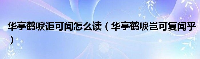 今天菲菲来为大家解答以上的问题。华亭鹤唳讵可闻怎么读,华亭鹤唳岂可复闻乎相信很多小伙伴还不知道,现在让我们一起来看看吧!