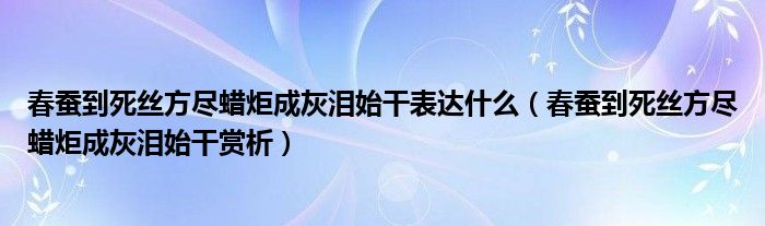 今天菲菲来为大家解答以上的问题。春蚕到死丝方尽蜡炬成灰泪始干表达什么,春蚕到死丝方尽蜡炬成灰泪始干赏析相信很多小伙伴还不知道,现在让我们一起来看看吧!