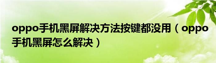 今天菲菲来为大家解答以上的问题。oppo手机黑屏解决方法按键都没用,oppo手机黑屏怎么解决相信很多小伙伴还不知道,现在让我们一起来看看吧!