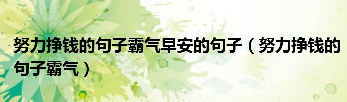 今天菲菲来为大家解答以上的问题。努力挣钱的句子霸气早安的句子,努力挣钱的句子霸气相信很多小伙伴还不知道,现在让我们一起来看看吧!