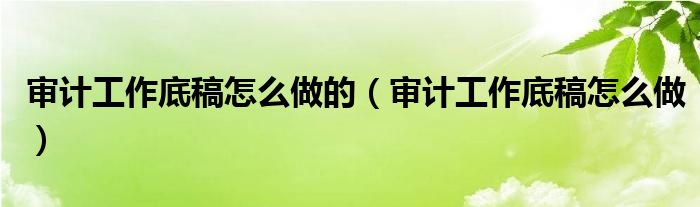 今天菲菲来为大家解答以上的问题。审计工作底稿怎么做的,审计工作底稿怎么做相信很多小伙伴还不知道,现在让我们一起来看看吧!
