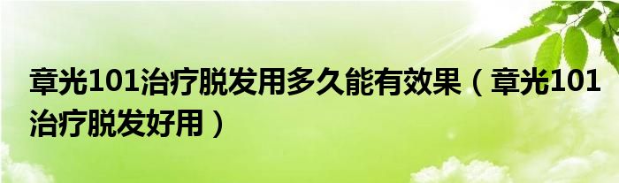 今天菲菲来为大家解答以上的问题。章光101治疗脱发用多久能有效果,章光101治疗脱发好用相信很多小伙伴还不知道,现在让我们一起来看看吧!