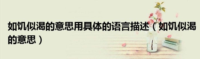 今天菲菲来为大家解答以上的问题。如饥似渴的意思用具体的语言描述,如饥似渴的意思相信很多小伙伴还不知道,现在让我们一起来看看吧!