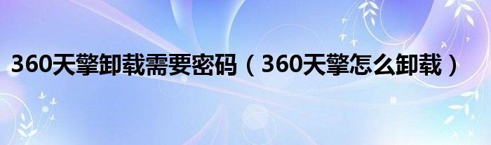 今天菲菲来为大家解答以上的问题。360天擎卸载需要密码,360天擎怎么卸载相信很多小伙伴还不知道,现在让我们一起来看看吧!