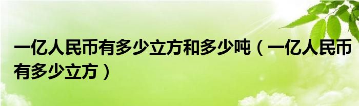 今天菲菲来为大家解答以上的问题。一亿人民币有多少立方和多少吨,一亿人民币有多少立方相信很多小伙伴还不知道,现在让我们一起来看看吧!