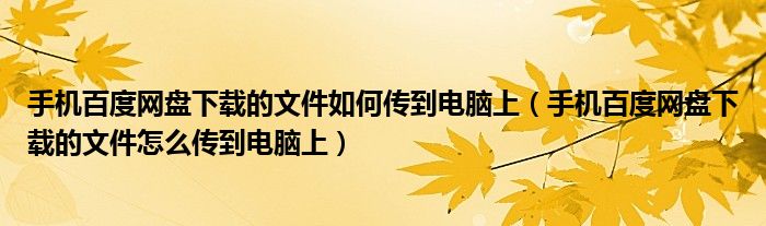 今天菲菲来为大家解答以上的问题。手机百度网盘下载的文件如何传到电脑上,手机百度网盘下载的文件怎么传到电脑上相信很多小伙伴还不知道,现在让我们一起来看看吧!