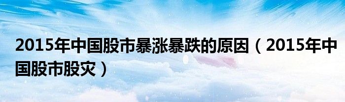 今天菲菲来为大家解答以上的问题。2015年中国股市暴涨暴跌的原因,2015年中国股市股灾相信很多小伙伴还不知道,现在让我们一起来看看吧!
