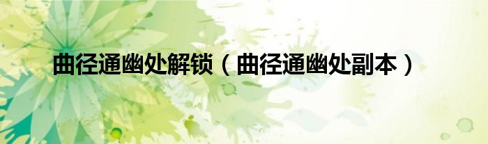 今天菲菲来为大家解答以上的问题。曲径通幽处解锁,曲径通幽处副本相信很多小伙伴还不知道,现在让我们一起来看看吧!