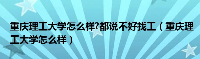 今天菲菲来为大家解答以上的问题。重庆理工大学怎么样?都说不好找工,重庆理工大学怎么样相信很多小伙伴还不知道,现在让我们一起来看看吧!