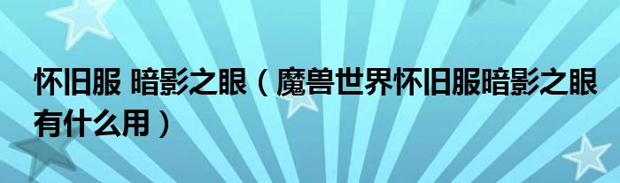 今天菲菲来为大家解答以上的问题。怀旧服 暗影之眼,魔兽世界怀旧服暗影之眼有什么用相信很多小伙伴还不知道,现在让我们一起来看看吧!