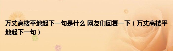 万丈高楼平地起下一句是什么 网友们回复一下(万丈高楼平地起下一句),时间来不及了,求直接说重点!
