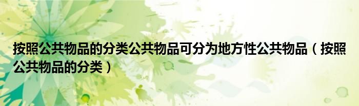 今天菲菲来为大家解答以上的问题。按照公共物品的分类公共物品可分为地方性公共物品,按照公共物品的分类相信很多小伙伴还不知道,现在让我们一起来看看吧!