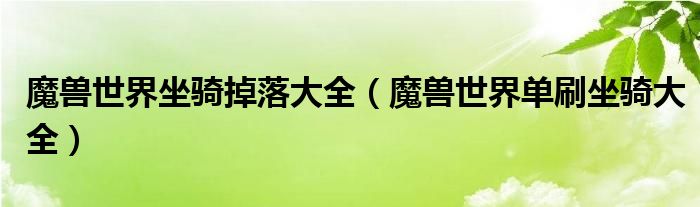 今天菲菲来为大家解答以上的问题。魔兽世界坐骑掉落大全,魔兽世界单刷坐骑大全相信很多小伙伴还不知道,现在让我们一起来看看吧!