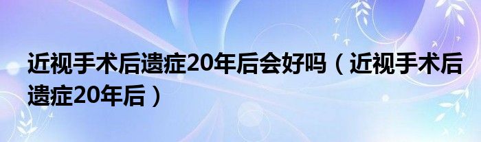 今天菲菲来为大家解答以上的问题。近视手术后遗症20年后会好吗,近视手术后遗症20年后相信很多小伙伴还不知道,现在让我们一起来看看吧!