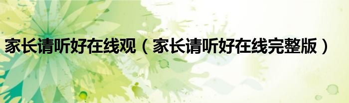 今天菲菲来为大家解答以上的问题。家长请听好在线观,家长请听好在线完整版相信很多小伙伴还不知道,现在让我们一起来看看吧!