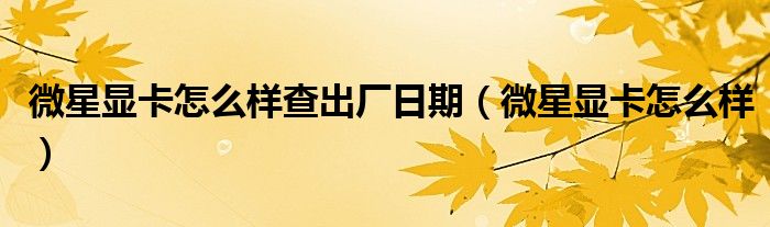 今天菲菲来为大家解答以上的问题。微星显卡怎么样查出厂日期,微星显卡怎么样相信很多小伙伴还不知道,现在让我们一起来看看吧!