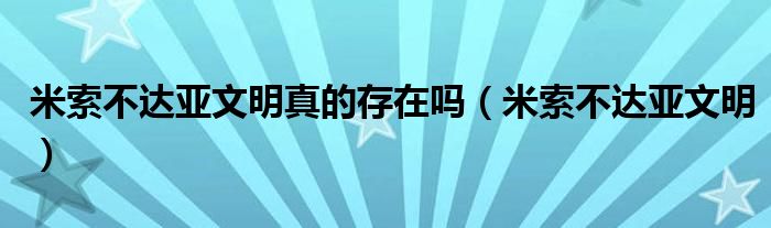 今天菲菲来为大家解答以上的问题。米索不达亚文明真的存在吗,米索不达亚文明相信很多小伙伴还不知道,现在让我们一起来看看吧!
